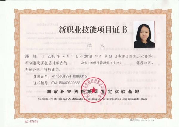 權(quán)威身份認(rèn)可:國家職業(yè)資格培訓(xùn)鑒定實(shí)驗(yàn)基地頒發(fā)“BIM項(xiàng)目管理師”證書,該證書在國家職業(yè)資格培訓(xùn)鑒定實(shí)驗(yàn)基地網(wǎng)上查詢。