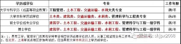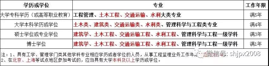 具有工程技術(shù)或工程經(jīng)濟(jì)專業(yè)大專以上(含大專)學(xué)歷,并符合下列條件之一者,可申請參加監(jiān)理工程師執(zhí)業(yè)資格考試。