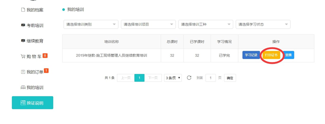 學(xué)時審核與考核全部通過后,可點擊【打印證書】查看 或下載學(xué)時證明。