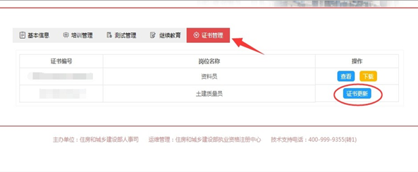 然后,在“證書管理”中可對原證書進(jìn)行更新,點擊【證 書更新】,系統(tǒng)將自動生成電子證書,同時原證書作廢。
