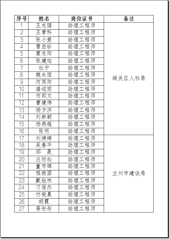根據(jù)蘭州市職稱改革領(lǐng)導(dǎo)小組辦公室等管理規(guī)定,蘭州市建設(shè)工程專業(yè)中級職稱評審委員會評審,蘭州市住房和城鄉(xiāng)建設(shè)局發(fā)文,甘肅省人力資源服務(wù)有限公司報送。凡通過評審合格者,獲得初級助理工程師職業(yè)資格證。